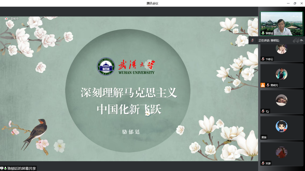 当天上午,武汉大学党委原副书记、国务院学科评议组专家、中央马工程首席专家、教育部重大项目首席专家骆郁廷教授受邀作了题为《深刻理解马克思主义中国化新飞跃》的学术报告。 骆郁廷教授从马克思主义中国化的飞跃是发展的历史跨越、马克思主义中国化新飞跃是第三次历史飞跃、马克思主义中国化新飞跃是理论与实践的突破、马克思主义中国化新飞跃是新时代的新跨越四个方面展开。他指出,马克思主义中国化新飞跃是以第一次飞跃为前提、第二次飞跃为基础而得以升华的,实现了新时代理论与实践相统一的飞跃,开辟了理论与实践发展的新境界,并鼓励大家要明确自己作为新时代年轻人的责任和担当,要以马克思主义中国化新飞跃的创新理论成果和创新实践成果为指导,助力全面建成社会主义现代化强国,实现中华民族伟大复兴,完成中国由世界大国向世界强国的转变和跨越。 学员纷纷表示学术报告拓展了学术视野,切实感受到beat365中文官方网站良好的学术氛围。