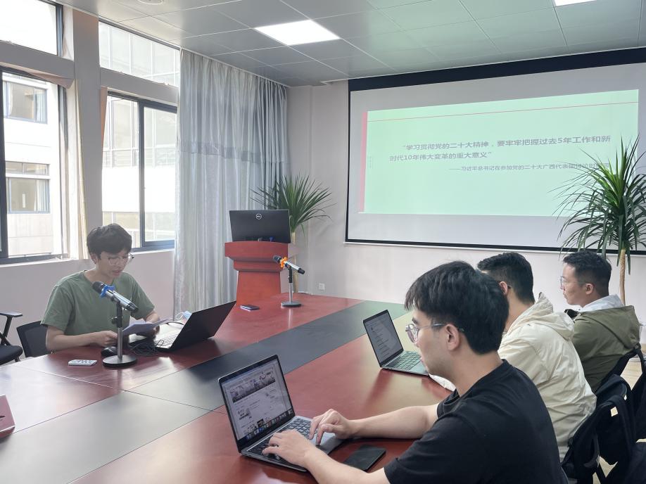 刘浩霆围绕“学习新时代十年伟大成就——以经济建设地历史成就为中心”主题,和党员们交流了自己主题教育的学习体会。