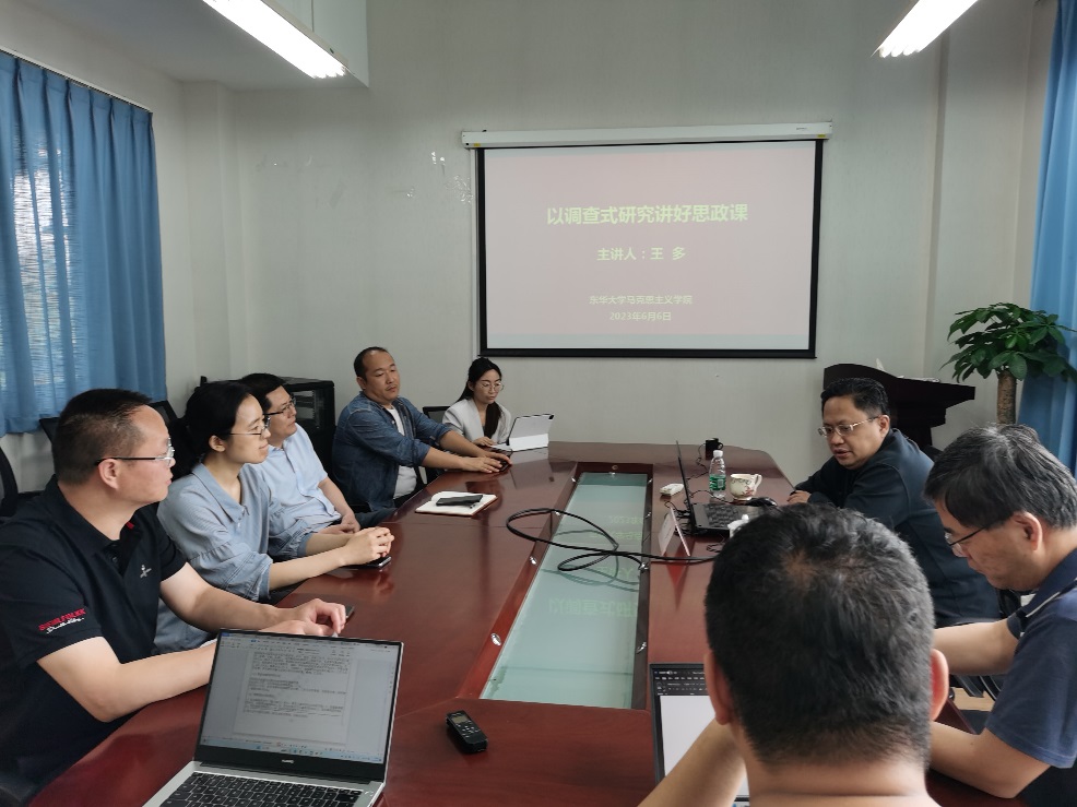 为深入推动学习贯彻习近平新时代中国特色社会主义思想主题教育,按照主题教育活动工作安排,大兴调查研究之风,推进以调查研究提升思政课教学质量。6月6日下午,学院邀请《解放日报》思想周刊兼《上观新闻》主编、高级记者、复旦大学博士后、智库专家王多,为学院思政课教师作了题为《以调查式研究讲好思政课》的专题讲座。讲座由学院副院长陈向义教授主持,各教研室的教师代表参加了此次讲座。 讲座活动中,王多主编从自身媒体工作的视角出发,阐述他在实际工作中如何将新闻工作与学术研究相结合,通过深入的学术研究对发生的时事新闻进行“调查式研究”,并向学院思政课教师分享如何将“调查式研究”融入到思政课的心得,从C919和淄博烧烤等现实案例出发,为学院教师详细讲解了马克思主义中国化时代化理论与中国现实发展之间的联系,为学院的思政课教学提供了诸多鲜活的教学案例。王多主编和学院教师进行了现场互动,从多个角度回答了青年教师提出关于“调查式研究”的问题。