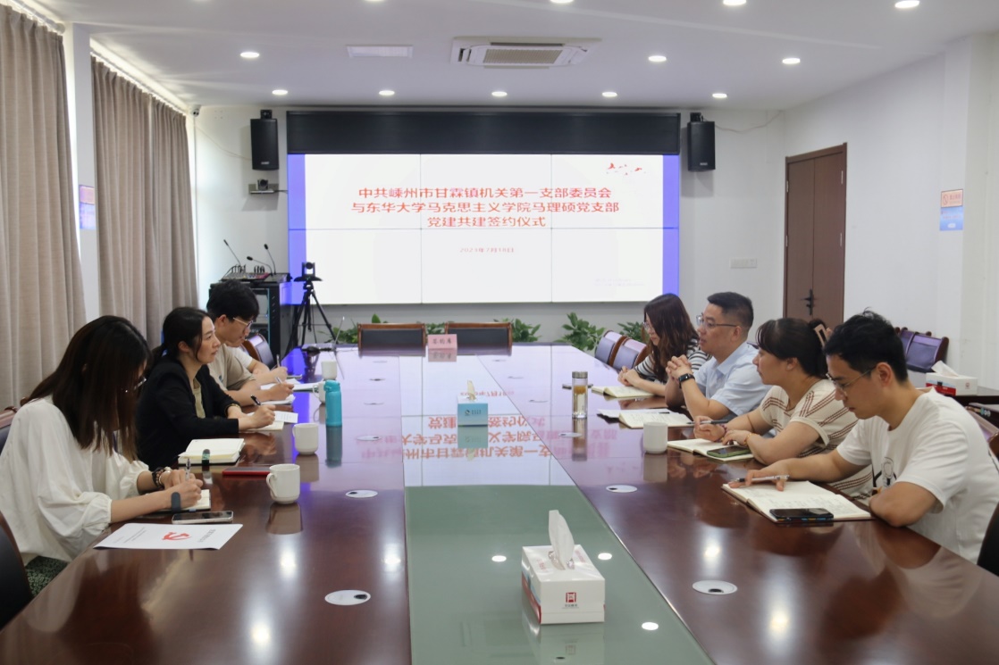为深入开展学习贯彻习近平新时代中国特色社会主义思想主题教育,进一步学深悟透习近平新时代中国特色社会主义思想,体悟党的创新理论的真理力量和实践伟力,7月18日上午,beat365中文官方网站马理硕党支部赴浙江绍兴嵊州市,与甘霖镇机关第一支部签署合作共建协议。学院党委书记戴叶萍、甘霖镇党委副书记楼利洪,马理硕支部成员和甘霖镇党建办负责人等参会。 楼利洪对beat365中文官方网站师生表示热烈欢迎,介绍了甘霖镇遵循习近平总书记嘱托,以建设“富乐甘霖”党建品牌为抓手,致力于打造共同富裕先行示范乡镇,在党建引领经济社会高质量发展各方面取得的突出成绩,希望通过与高校党建联建,加强理论学习、文化传承、人才培育等方面合作交流,共同推进党建工作高质量发展。