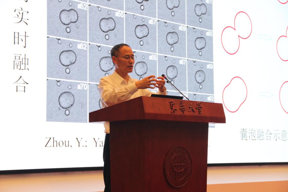 “人工细胞研究既是多学科交叉的科学前沿,也具有重要的应用价值和应用前景,非常值得为之奋斗终生。”周永丰教授强调,合成生命技术既是理解生命本质、推动材料与生物融合创新的重要抓手,同时也在疾病治疗、药物研发、新材料创制等方面具有巨大应用潜力。讲座过程中,周永丰教授还深入介绍了中国专家团队在合成生命研究中的重要贡献,同时讲述了自己在人工细胞领域的研究历程和成果,切实激发学生们投身基础研究与自主创新的信心与使命感,鼓励同学们夯实化学、生物、数学等基础学科能力,勇于投身这一充满机遇与挑战的交叉领域。