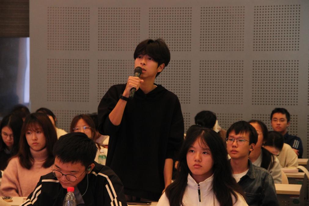 在交流互动环节,同学们围绕人工细胞伦理边界、技术产业化前景、多学科交叉融合等踊跃提问,周永丰教授一一细致解答。对于课程讲座同学们纷纷表示收获满满,如信息与智能科学学院武静怡同学谈到:“当科学家如同程序员般设计和构建生命体时,这不仅是技术的胜利,更映照出人类对创造与掌控的渴望。合成生命不仅是科学前沿,更是哲学与伦理的试金石。”材料科学与工程学院孔雨婷同学表示:“周教授的讲解让我对合成生命有了全新认识,从‘辛西娅’到各类模型细胞,让我看到了材料科学与生命科学交叉融合的无限可能。”