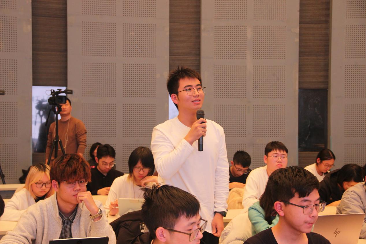 在交流环节,同学们围绕人工智能伦理、国产芯片发展、AI与行业融合等话题踊跃提问,汪玉教授一一细致解答。讲座不仅是一场前沿技术分享,更是一次关于科技自强、产业变革与时代责任的深度对话,同学们纷纷表示获益良多。纺织学院梁晓涵同学表示:“汪老师的讲座让我真切感受到AI不仅是国家战略,更是触手可及的未来工具。我国在能源与数据方面的优势如何转化为算力优势,是我们这代青年需要思考和实践的命题。”信息与智能科学学院雷洪同学谈到:“汪老师对AI发展历史的梳理让我认识到这项技术的来之不易,‘智能体’‘具身智能’等新概念也让我对专业学习有了更明确的方向——希望能为祖国在人工智能领域的发展贡献自己的一份力量。”